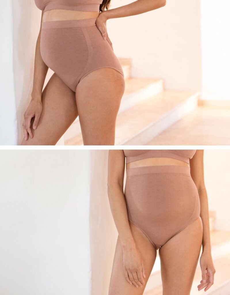 Bambukinės kapučino kelnaitės aukštu liemeniu nėščiosioms ir maitinančioms – dviguba pakuotė