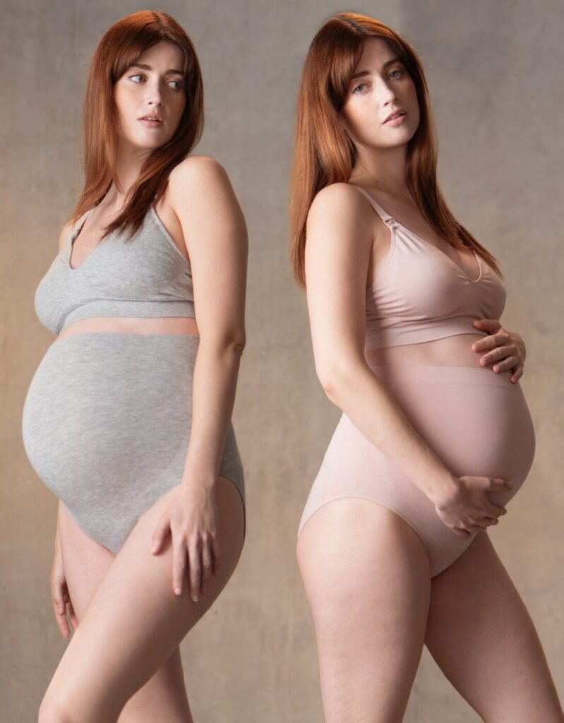 Bambukinės kelnaitės aukštu liemeniu nėščiosioms ir maitinančioms – pilka ir rožinė