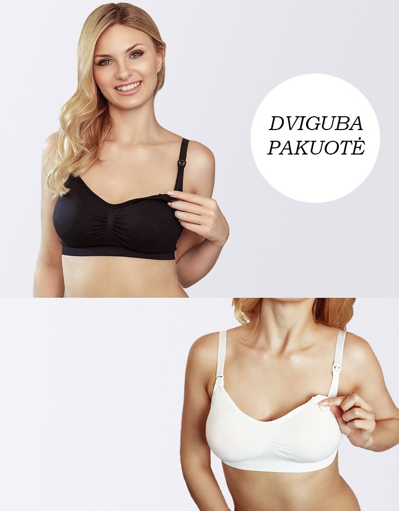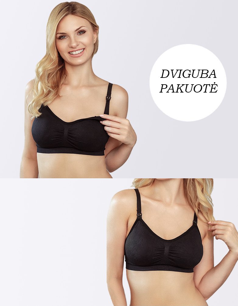 Bambukinių besiūlių maitinimo liemenėlių dviguba pakuotė – juoda